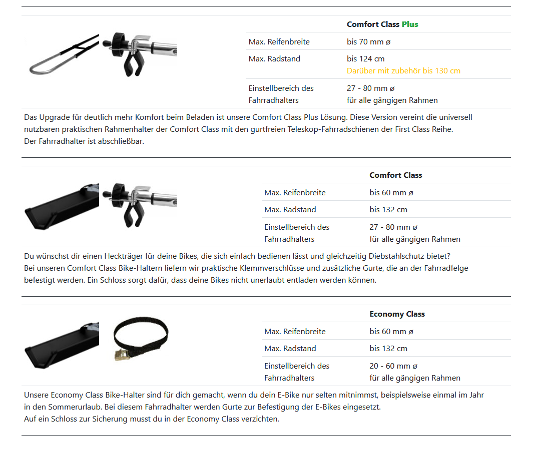 - Die Ladefläche ist am Heckträger frei justierbar. Aufgrund der Position der Rücklichter, benötigen Sie bei Ihrem Fahrzeug für den Fahrradtransport eine Lichtleiste mit Kennzeichenhalter.