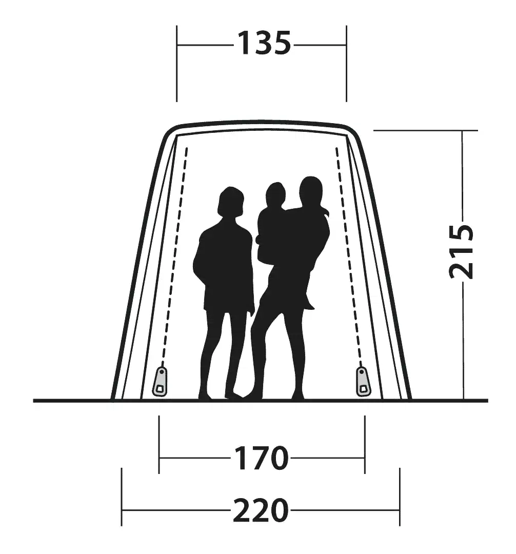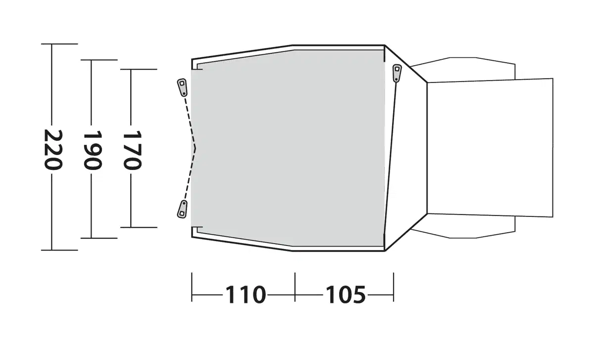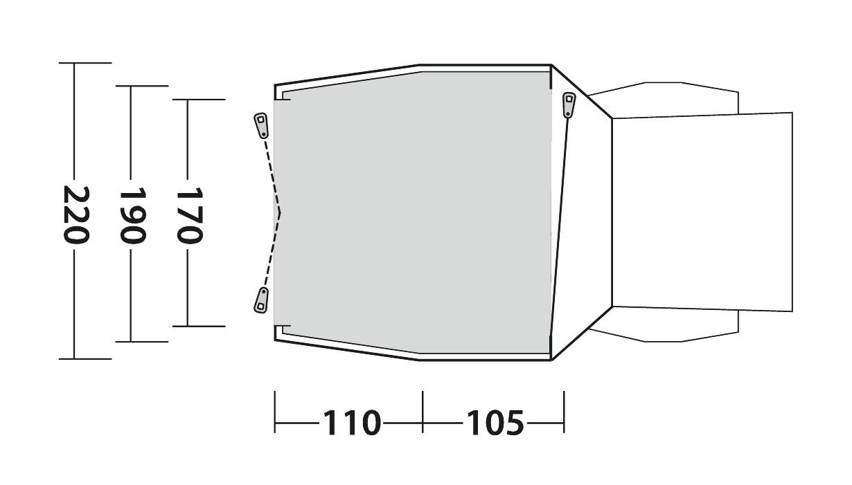 Sie bietet geringes Gewicht, kleine Packgröße, schnelle Einrichtung und große Stehhöhe sowie große Insektenschutzfenster mit wasserdichten Vorhängen, abnehmbare Bodenplatte, einfachen Zugang und die Möglichkeit, die Haupttür als Sonnensegel zu verwenden.