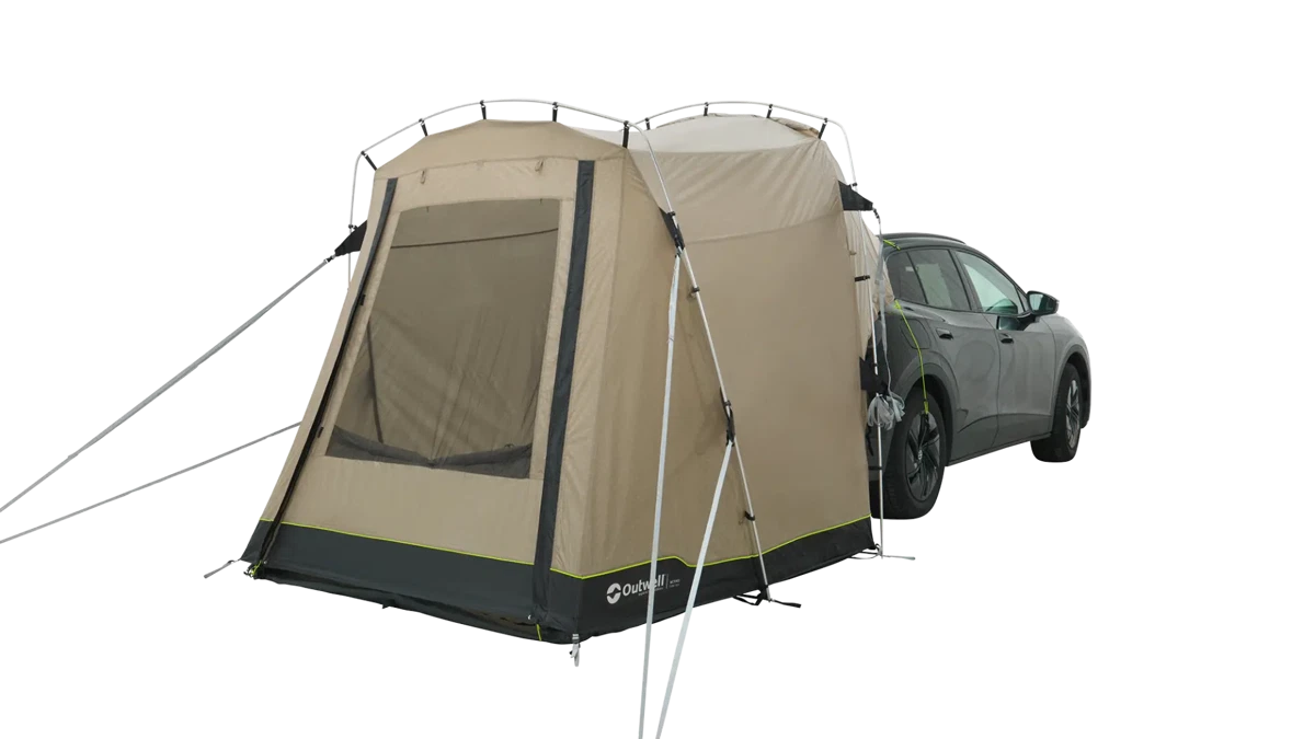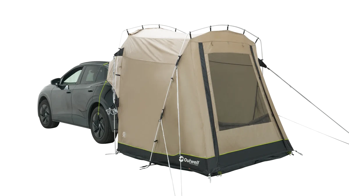 Das mit der Heckklappe montierte Outwell Dune SUV-Heckselt ist eine ideale Wahl für Paare und Familien, die die Verwendung von kleinen Transportern auf Outdoor-Abenteuern erweitern möchten.