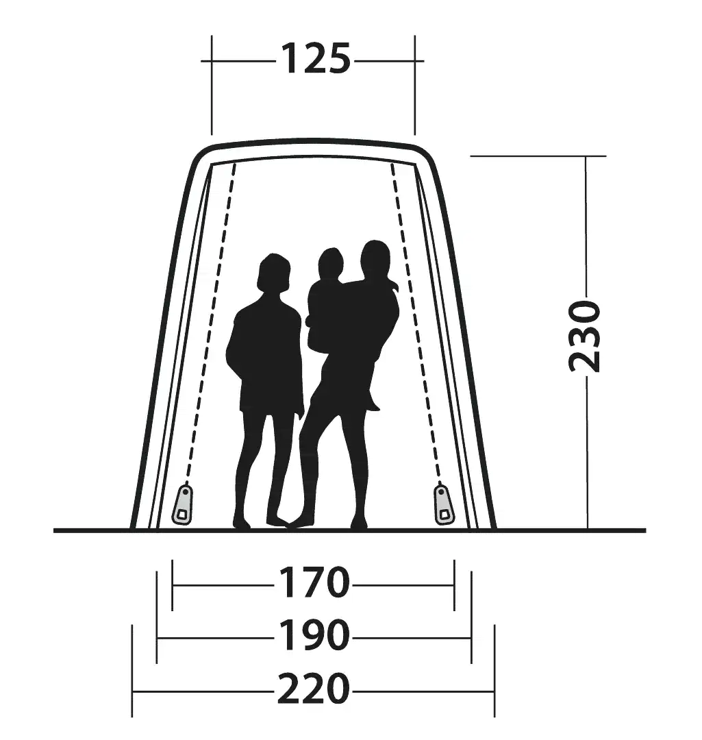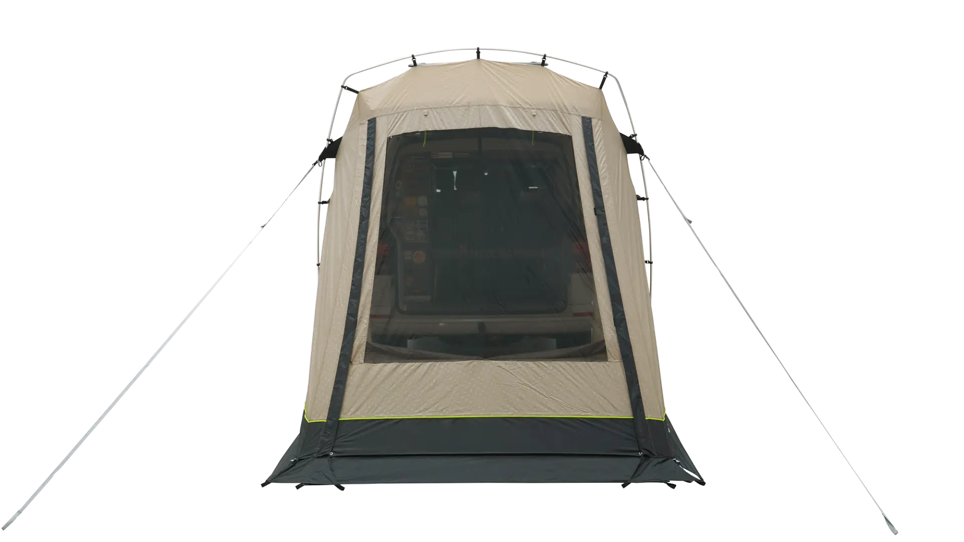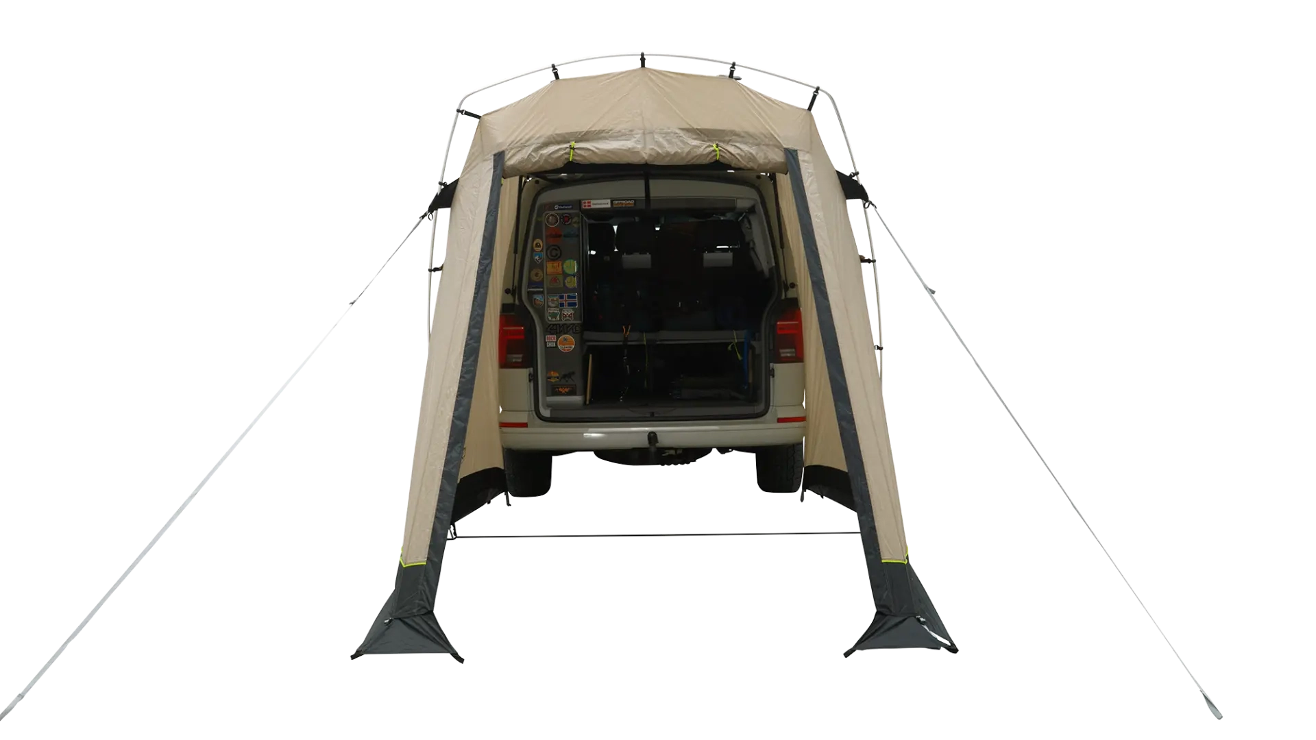 Das Heckzelt ist für die nahtlose Befestigung an beliebten Fahrzeugen wie der VW T5/T6 und der Mercedes-Benz V-Klasse konzipiert und bietet einen geräumigen Wohnbereich für Camping, Familienausflüge oder Picknicks.