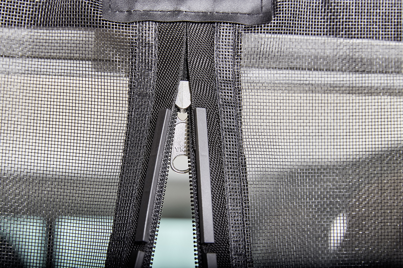 Das Gitter besitzt einen Doppelreißverschluss und kann von Innen und Außen geöffnet und geschlossen werden.