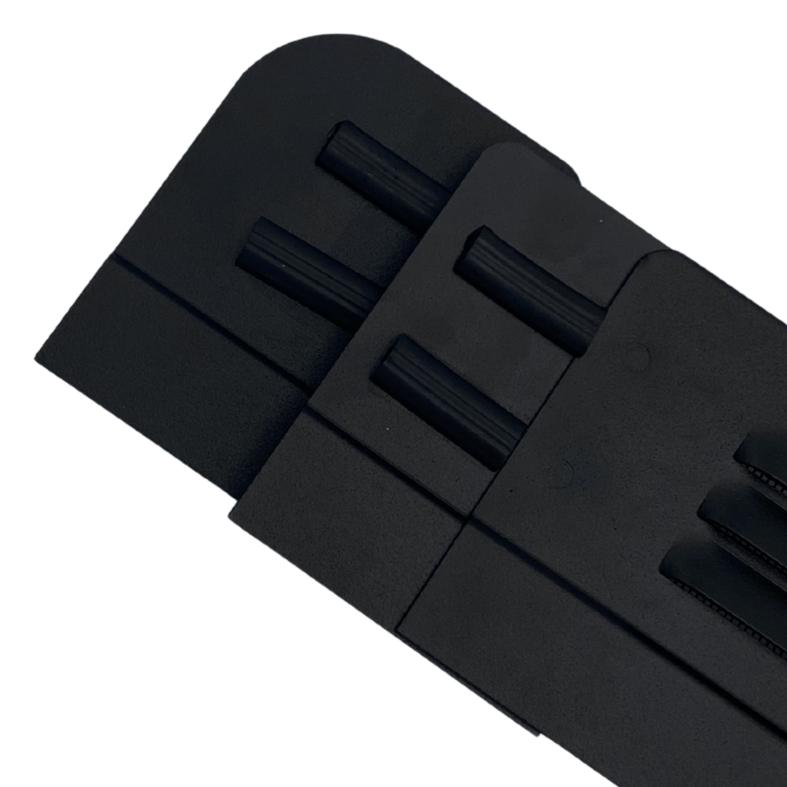 Das Gitter an die gewünschte Länge anpassen. Die Gummieinsätze individuell kürzen und in die Ausschnitte der Verlängerungen einbauen, damit kein Wasser eindringen kann.