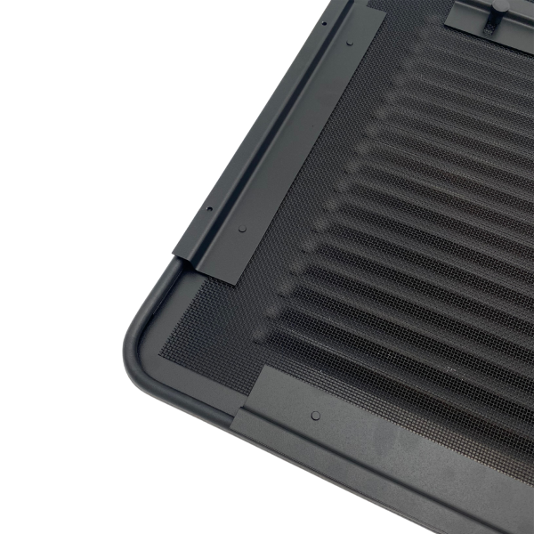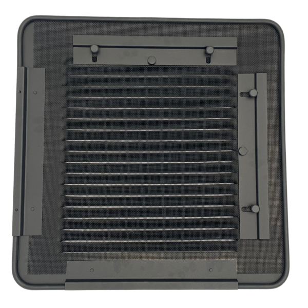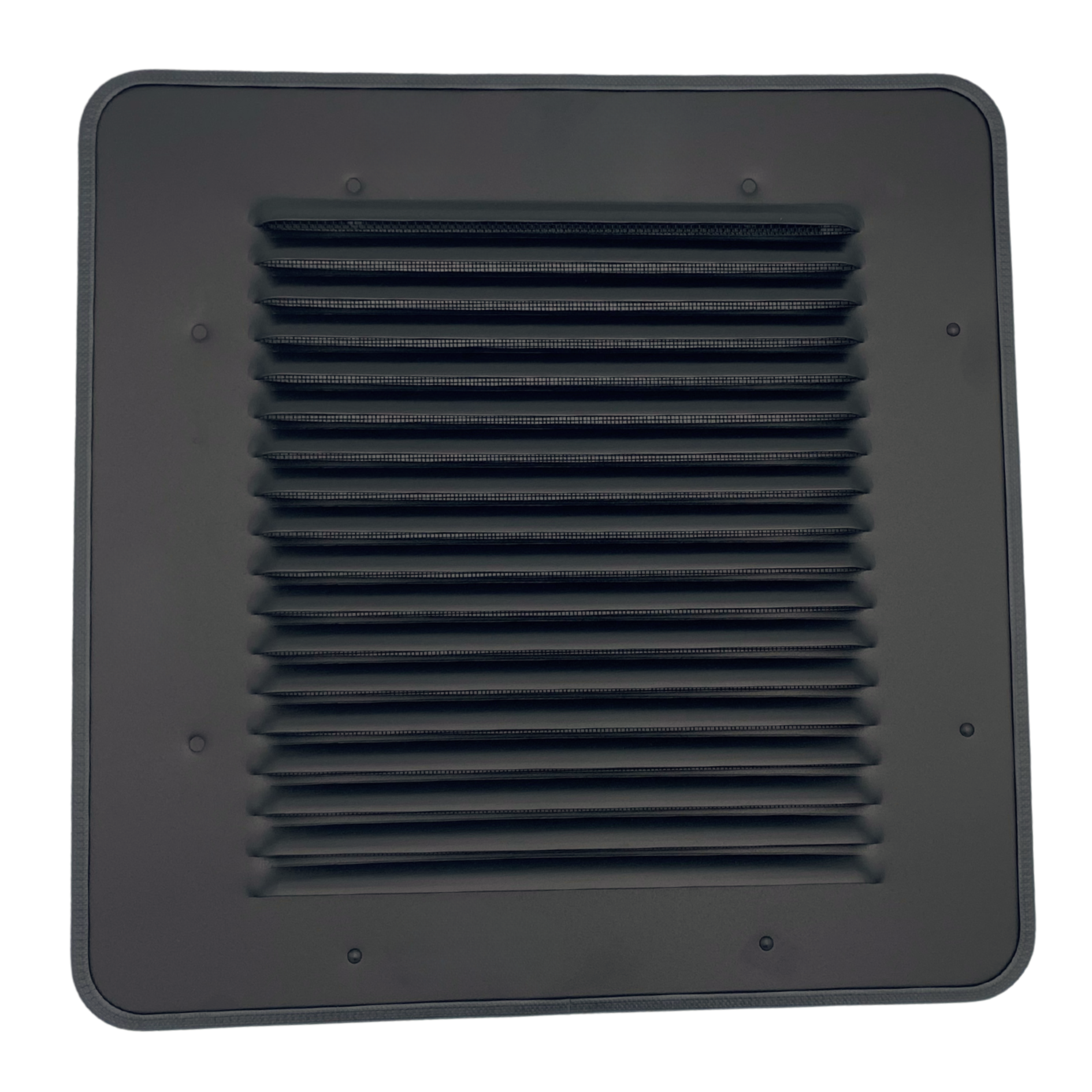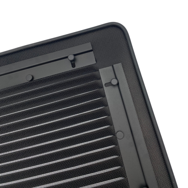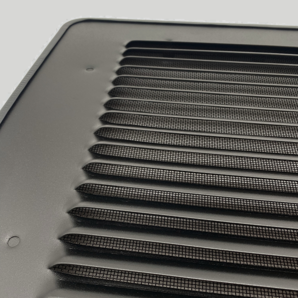 Vollständige Gummiumrandung des Lüftungsgitters zum Schutz gegen Regen, Nässe und Moskitos.