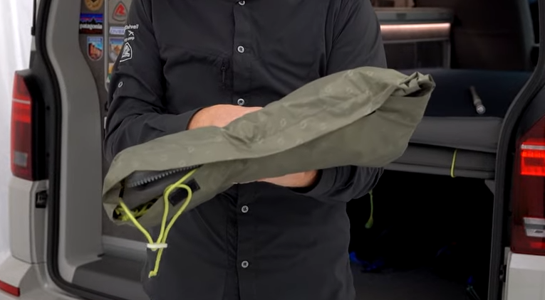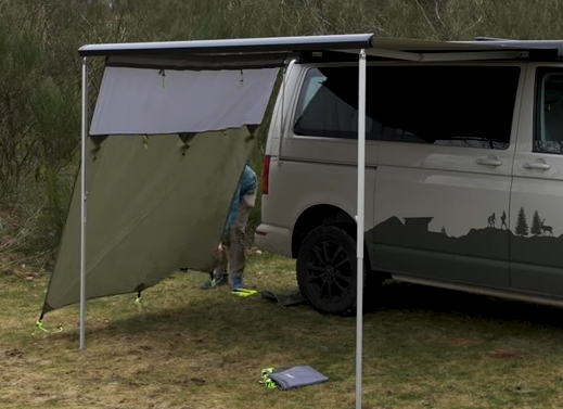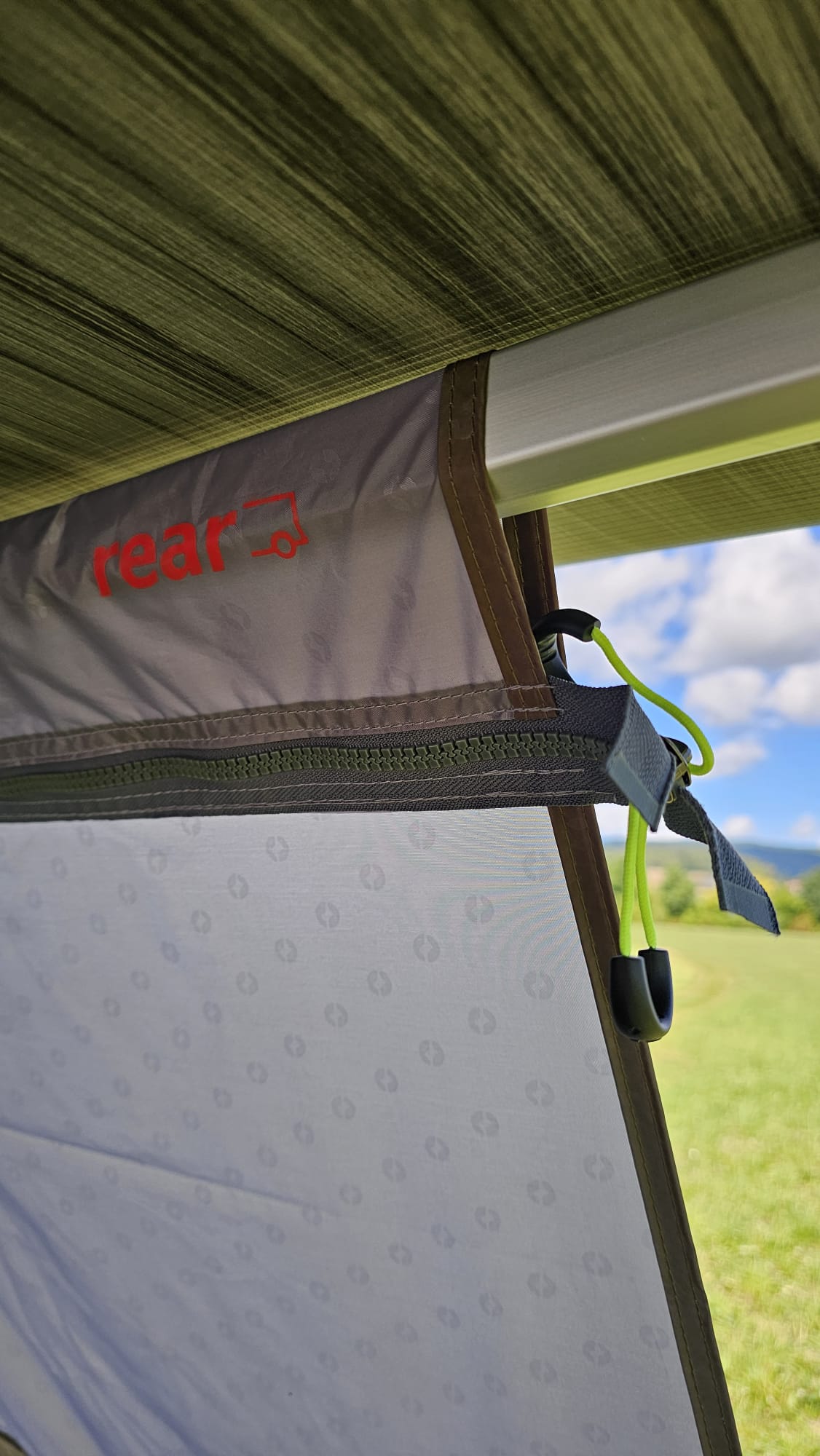 Zur sicheren Befestigung werden Abspannleinen und Heringe verwendet, die für eine zuverlässige Stabilität sorgen. Für noch mehr Flexibilität können eine oder beide Planen teilweise aufgerollt und mit Spannverschlüssen gesichert werden. So bleibt der Schutz in jeder Wetterlage erhalten.