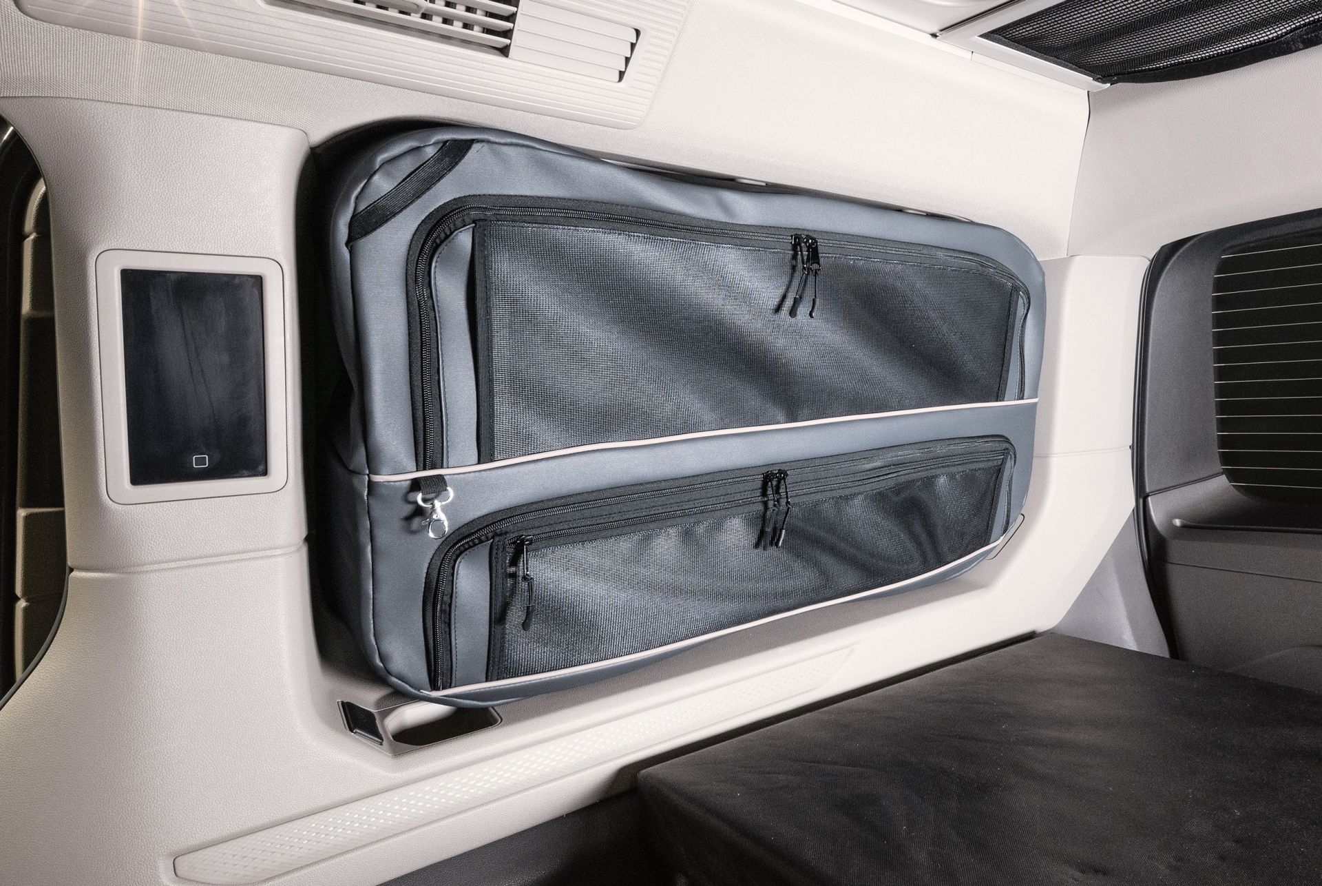 Mobile Preview: VanEquip Fensterpacktasche im Set mit Paneel für VW T7, anthrazit, Beifahrerseite, für Sicherheitsgurt - langer Radstand