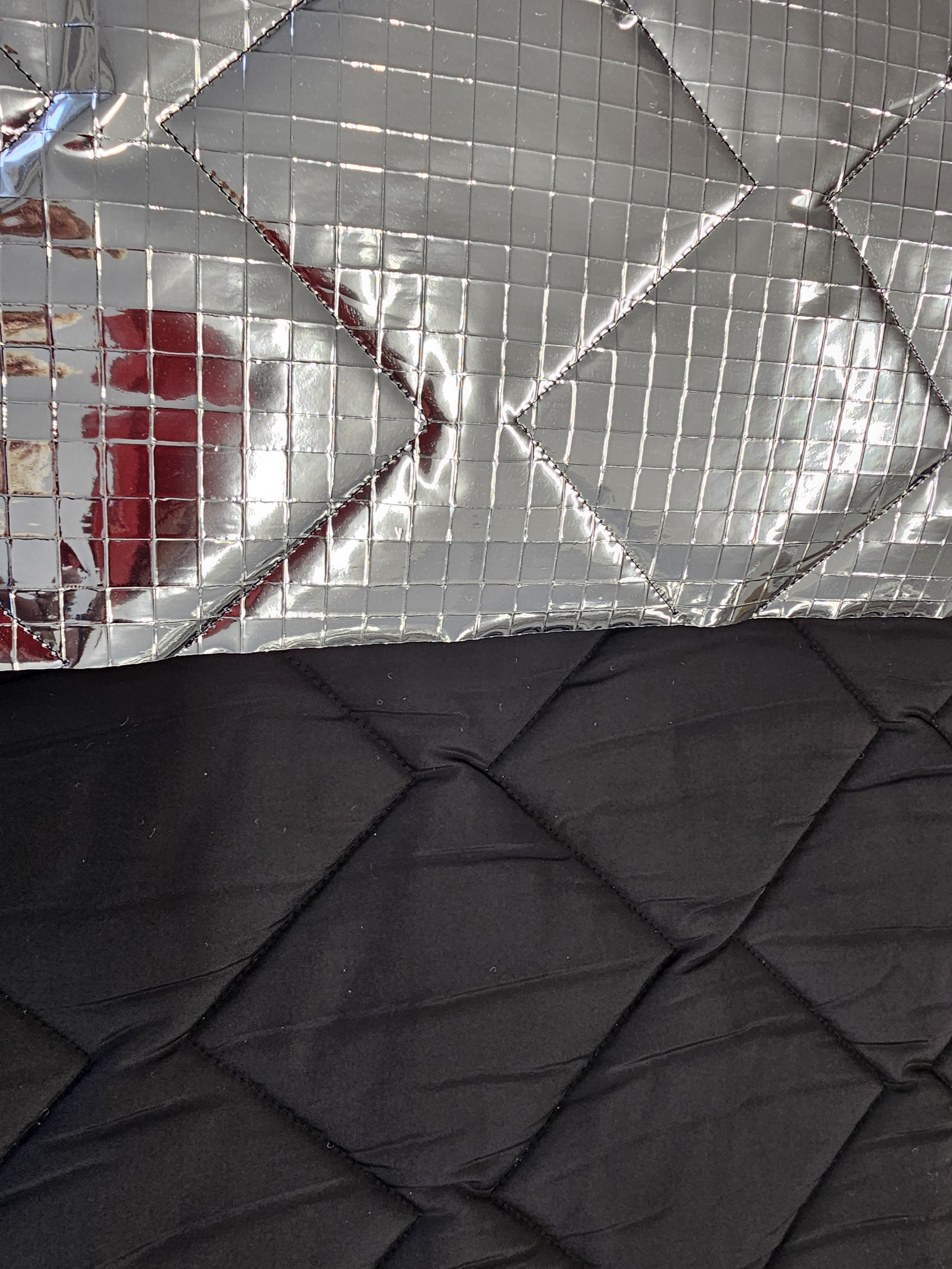 Thermomattenmaterial; 3,5 m x 1,55 m breit und 7 lagig (Innenseite schwarz - Außenseite mit silberner, glänzender, reflektierender Folie)