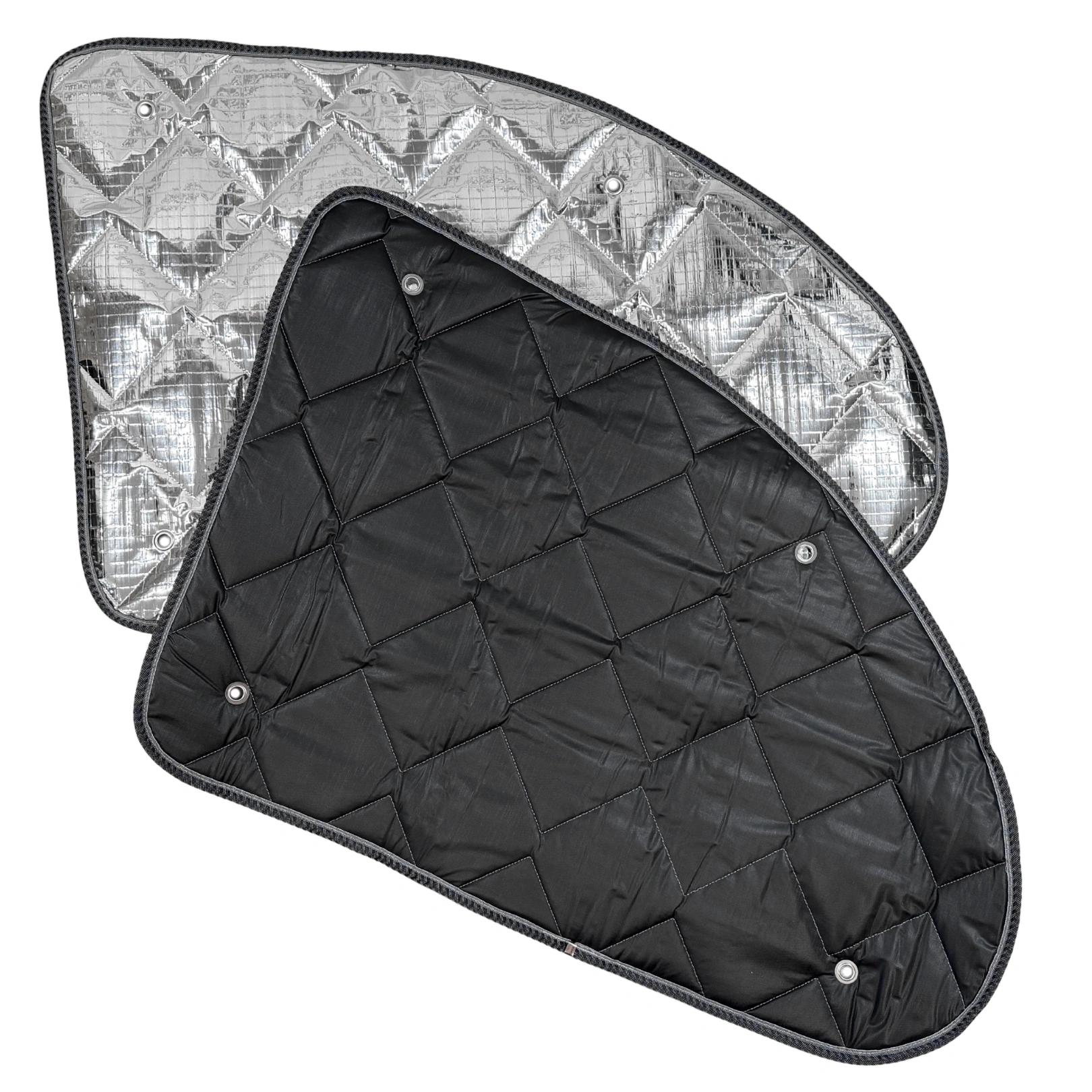 - Set-Inhalt: 1 Matte für Frontscheibe, 2 Matten für Fahrer- und Beifahrertür, inkl. Saugnapf-Set und Packtasche