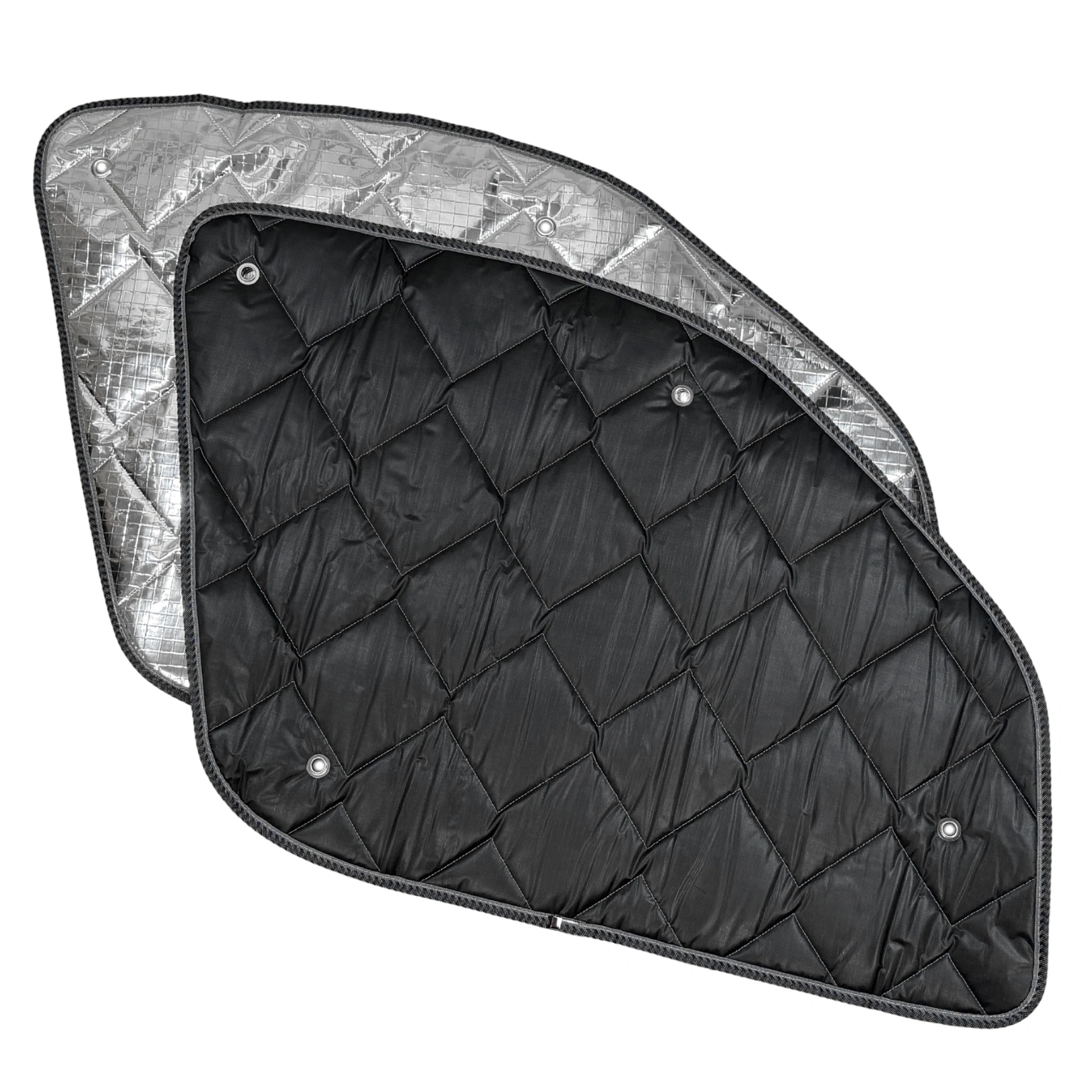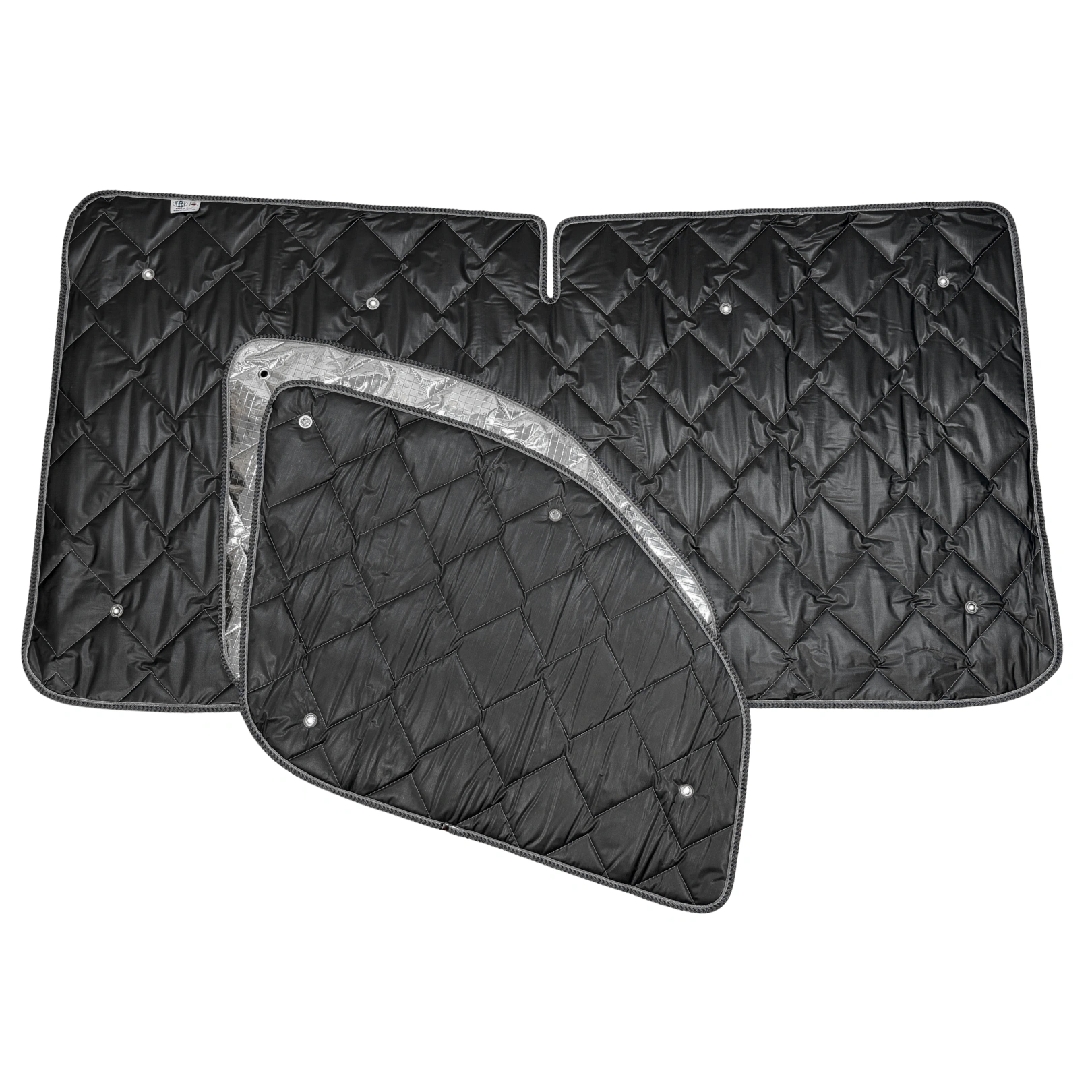 - Set-Inhalt: 1 Matte für Frontscheibe, 2 Matten für Fahrer- und Beifahrertür, inkl. Saugnapf-Set und Packtasche