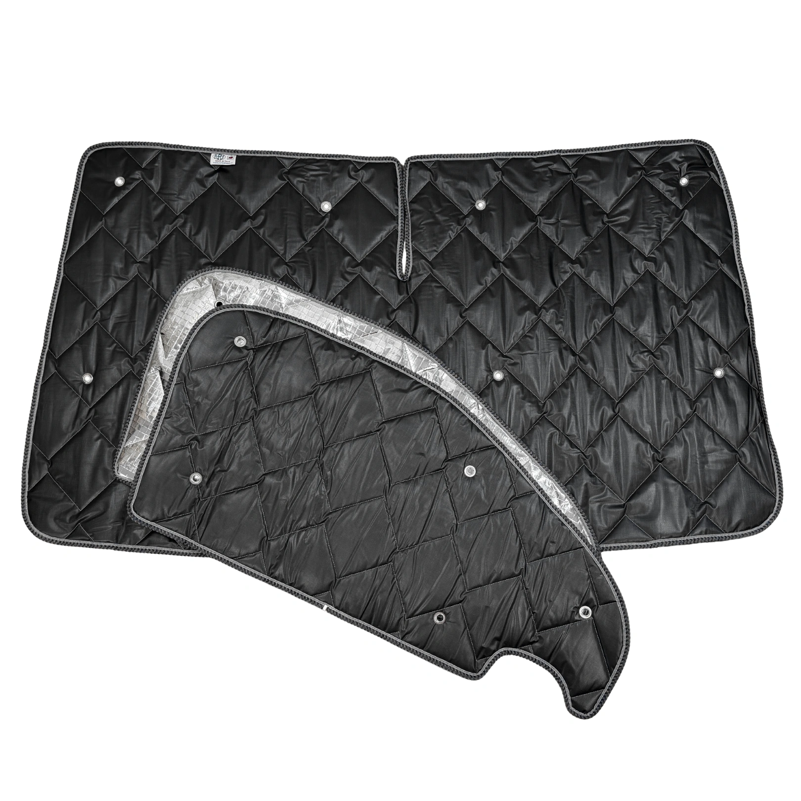 - Set-Inhalt: 1 Matte für Frontscheibe, 2 Matten für Fahrer- und Beifahrertür, inkl. Saugnapf-Set und Packtasche
