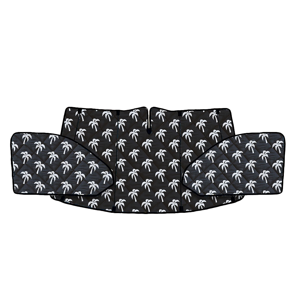 Thermomatte Fahrerhaus mit schwarzer Außenseite und weißen Palmen
