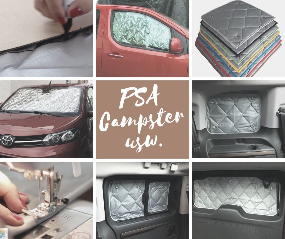Thermomatten für Dein PSA Fahrzeug- so individuell wie Du und Dein Van! Material innen grau (fester Stoff) - außen silber (Folie) Lust auf Farbe - wählen Sie ein farbiges Einfassband für Ihre Matten